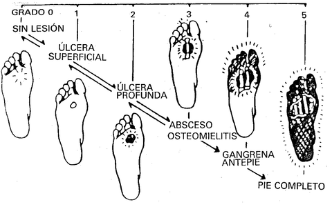 Es una clasificación que valora los distintos grados de las lesiones en el pie diabético y que se usa para crear protocolos de tratamiento adecuados a cada caso.